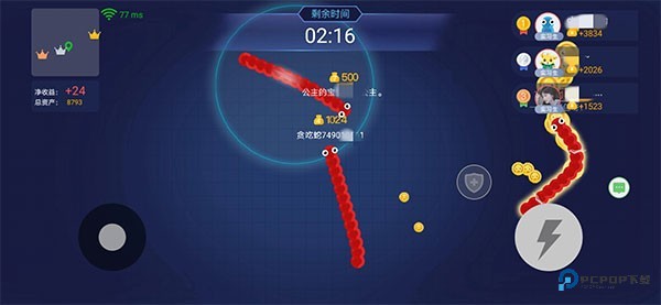 2、贪吃蛇大作战高分攻略:首先就是要想尽一切办法击杀你的对手。成功击杀对手的话,就能获得更大个的高分球,能够快速的增加你的长度,吃小球不如击杀一个对手。