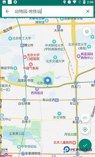 3、在地图中搜寻想要模拟的位置后点击右下角勾号按钮;