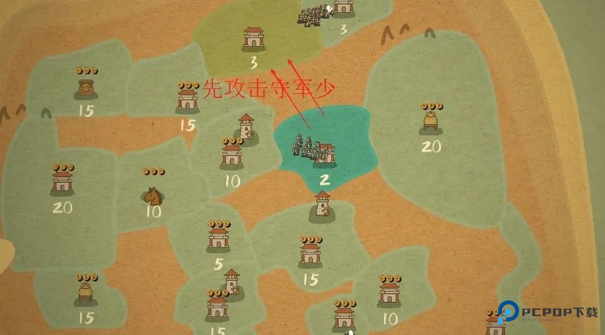 2、观察周围,先占领士兵熟练少的领地。