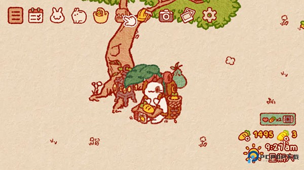 1、进入游戏,左上角是菜单,点击日程安排、兔子礼物、背包、装饰修改、相机、照片以及设置等选项。
