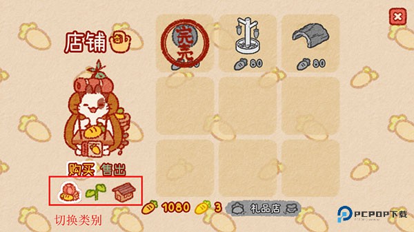 3、右下角,蓝色框里的萝卜是货币,可以用于兑换装饰和建筑;绿色框里的萝卜是食物,可以喂食兔子们,获取亲密度。