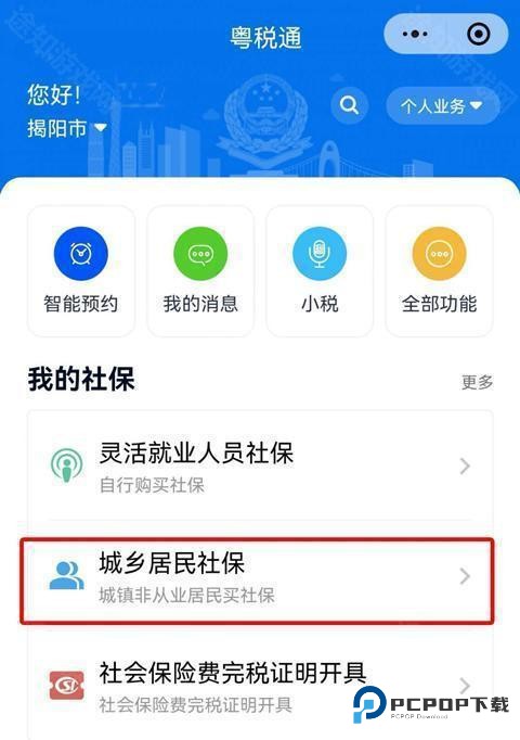 1、用户打开粤税通后,进入页面中点击【城乡居民社保】