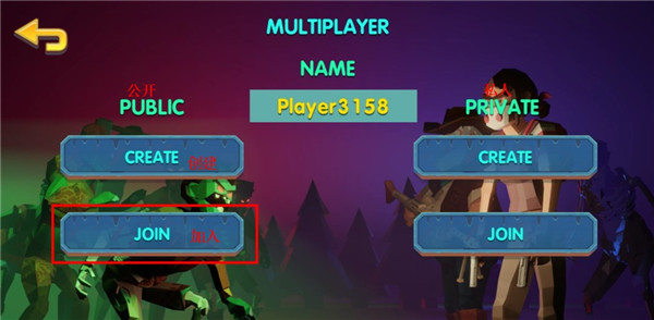 2、在公共房间和私人房间选择创建房间或者加入房间;
