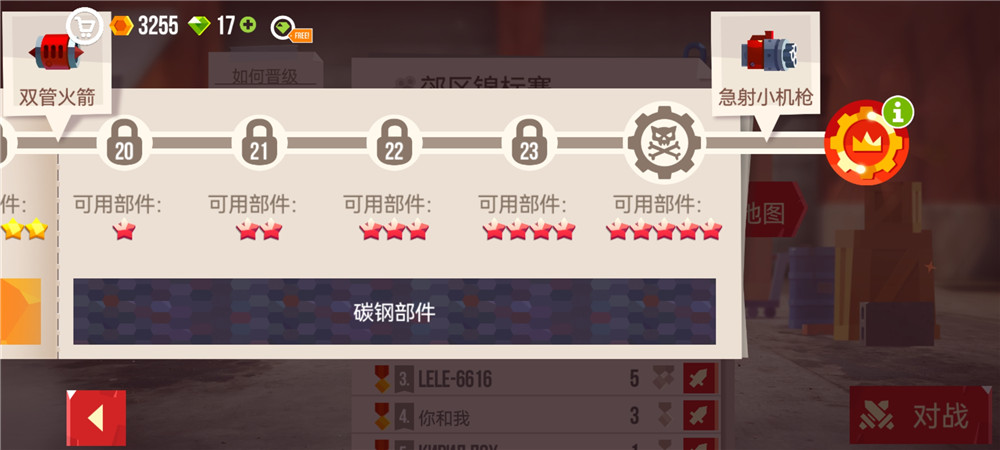 4、当我们的竞标赛达到碳钢部件五颗星就能获得急射小机啦!