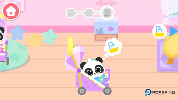 4、到达指定区域后,根据屏幕出现的动作图标操作:可能是给澡盆放水,或是拿起奶瓶喂食,也可能是换上干净的尿布哦。