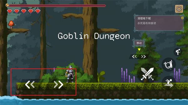 1、进入游戏后,玩家能够通过左下角的按键控制角色移动,可以不断往前面移动。