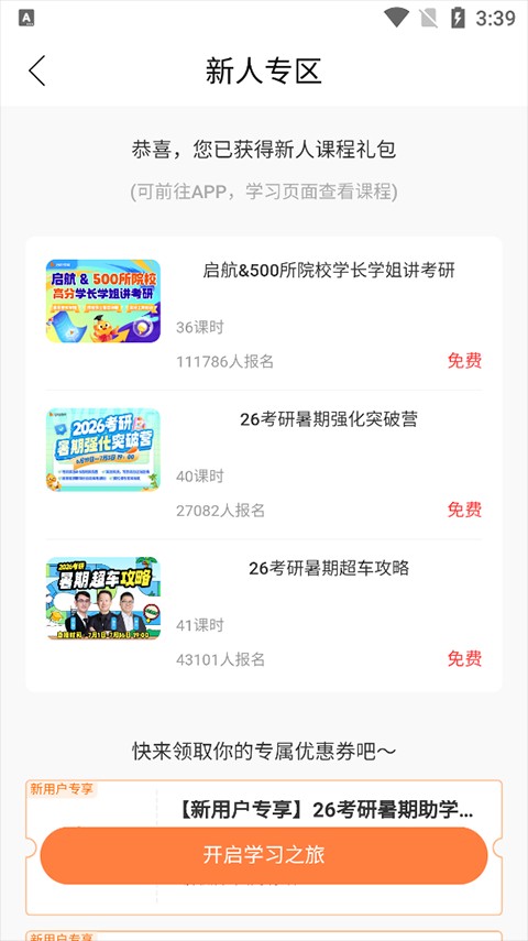 3、获得新人课程礼包开启学习之旅