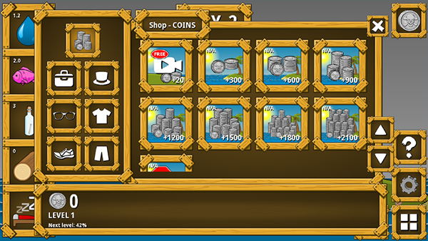 游戏商店中有大量的食物、金币、物品可以让玩家在岛上等待救援
