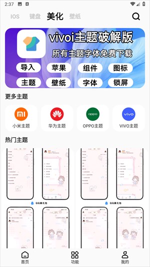 1、该软件可以下载ios主题。大量新增功能和服务,包括全新的虚拟iOS操作系统设计、iOS主题库更新等,轻松满足用户的各种下载需求。