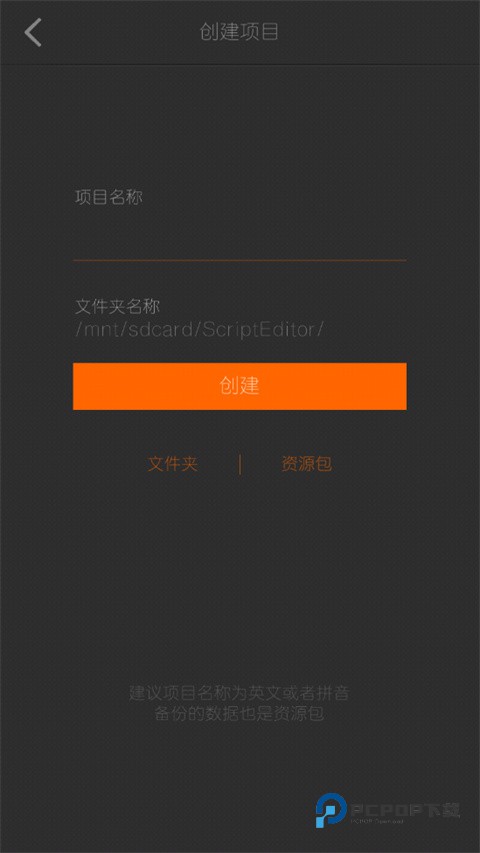 2、填写项目名称和文件夹名称;