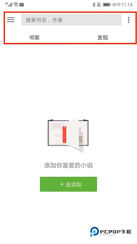 1、打开轻阅小说app,进入主界面,可看到包括书架、发现和搜索框三大栏目,点击搜索框,