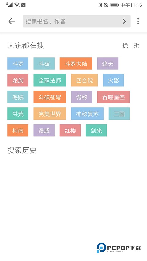 2、进入搜索界面,我们可以在搜索框输入书名和作者名查找需要的书源,也可以选择下方的热门搜索词,
