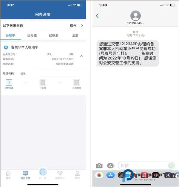 6、备案申请提交后,网办中心工作人员将在一个工作日内对备案信息审核确认,审核通过后,系统会将审核结果通过短信或“交管12123”APP消息发送给备案用户和车主。