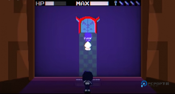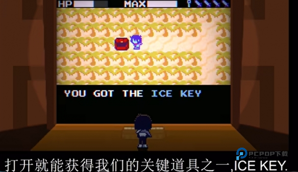 6、看到白色的地板后,找到有着游戏图标的门口,用之前红色宝箱里面的道具进行打开。