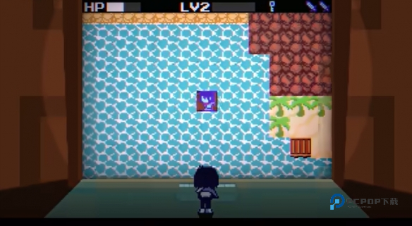 4、小游戏可以通过打怪升级的方式,增加剑的威力。当剑的等级满级后,一路向着左上角挥砍,就可以看到一个红色宝箱。