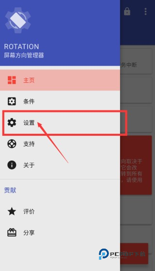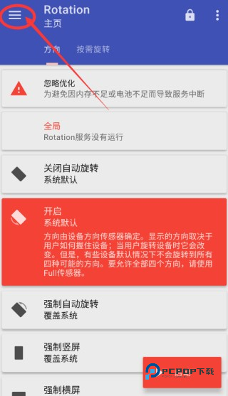 1、首先进入到屏幕方向管理器Rotation软件中,找到目录中的“强制横屏”。