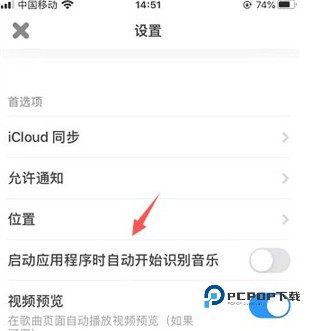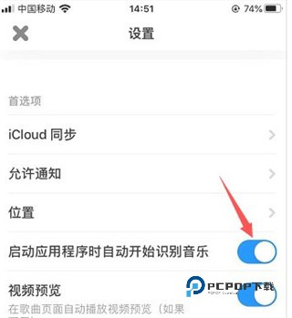 3、打开后找到启动应用程序时自动开始识别音乐