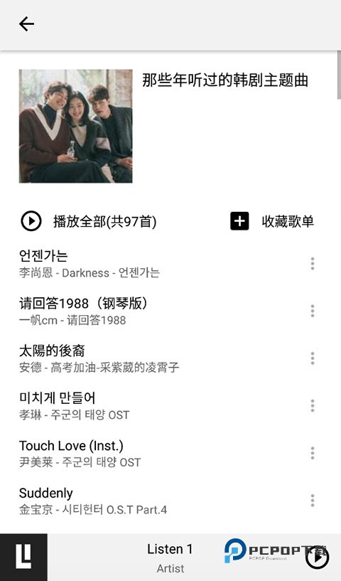 3、点开歌单选择自己喜欢的歌曲畅听,右上角的“+”还可以收藏此歌单。