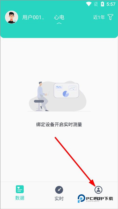 2、进入首页,可以看到用户的心电监测数据,点击我的页面。
