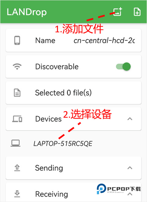 1、首先在手机端点击软件右上角的两个“+”号,选择自己要传输的图片、视频或文档,接着再在下方的【Devices】栏选择电脑的设备名称。