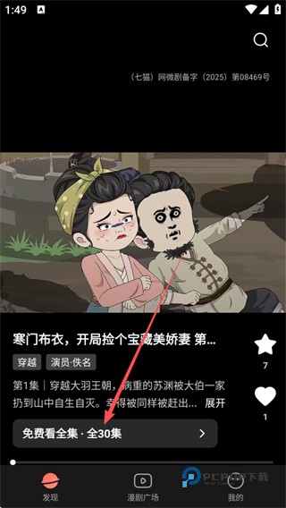 1、进入七猫漫剧app内后,点击【发现】,寻找自己感兴趣的漫剧
