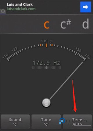 三、接下来散勾一弦,只勾一下就行,指针会摆动起来,待摆动停止后,指针会固定指在一个位置。屏幕上方字母栏正中应当显示“C2”。