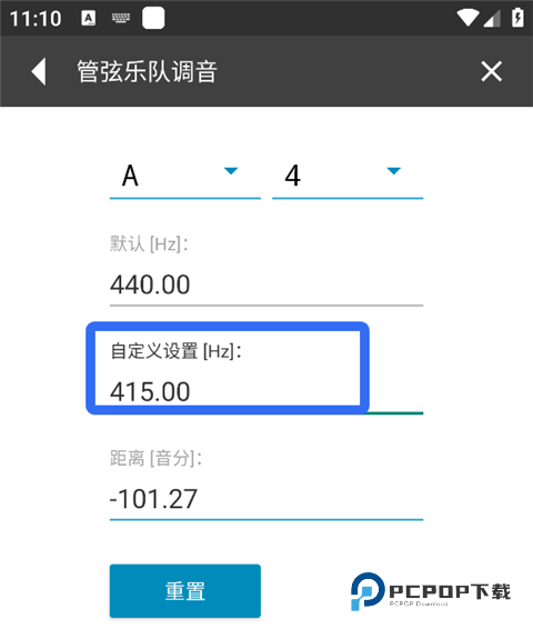 3、再点选Set custom {hz} 下方的数值440.00,将其改为415.00 或其他需要的数值