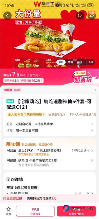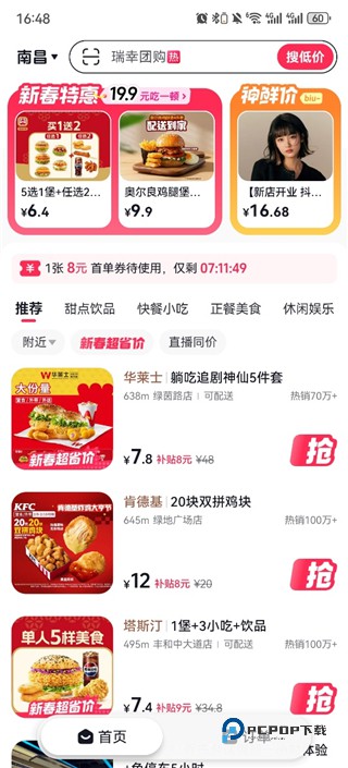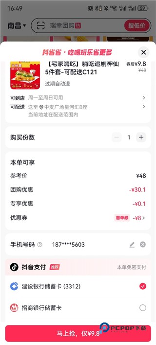 1、用户通过抖音账号登录界面后,授权当前位置后即可显示团购商品。