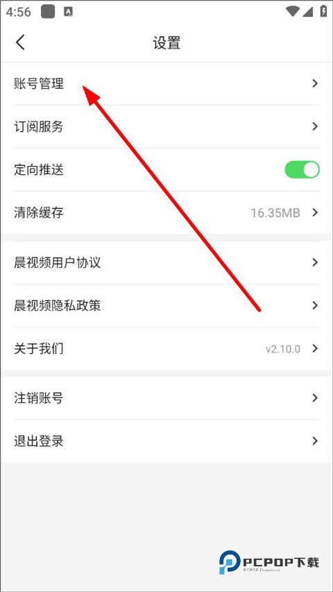 3、设置页面,用户可查看订阅服务、定向推送设置等,点击账号管理;