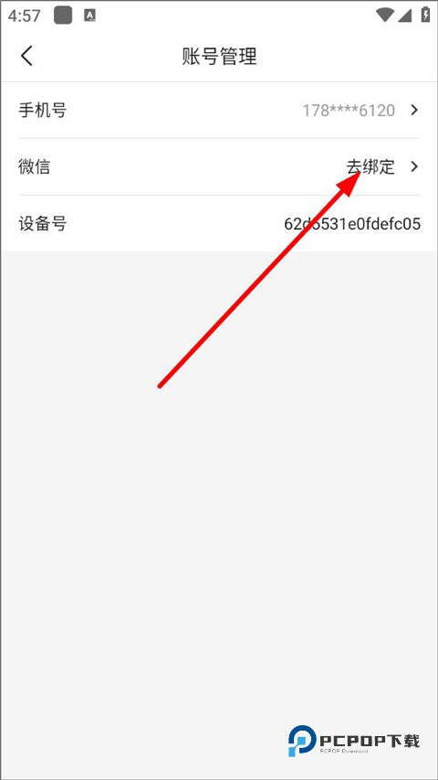 4、进入账号管理页面,用户可更换手机号,查看设备号,点击微信去绑定即可。