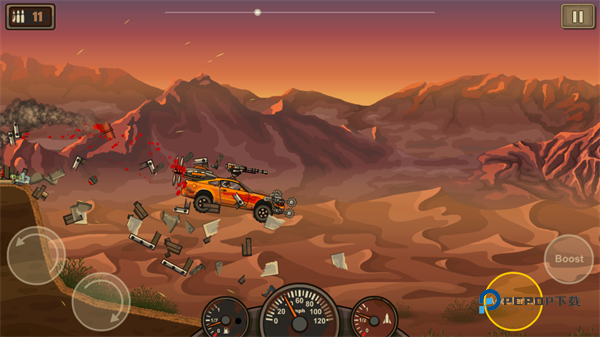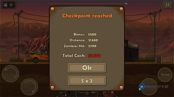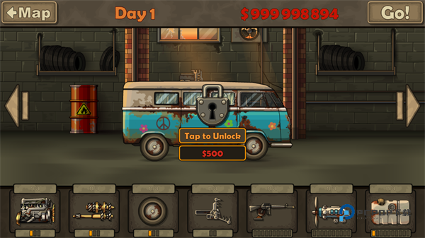 6、你需要使用有限的燃料完成每天的挑战,每次消灭一个僵尸都会得到一定的分数,在关卡中积累的分数越多,获得的奖励也就越多,解锁游戏内容。