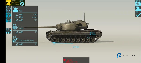 3、而点击透视、等效、撞击、视角,则可以对坦克调整位置,观看具体的数值;