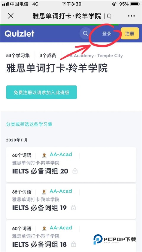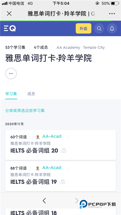 2、点击并进入"班级"后,便可看到班级中所包含的所有"学习集"(也就是单词卡)。
