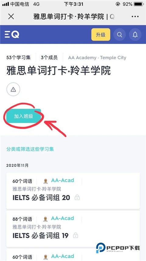 5、"加入班级"的按钮消息后,表明您已成功加入了单词打卡班。