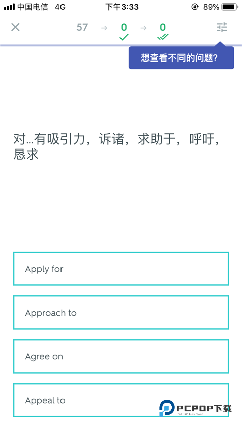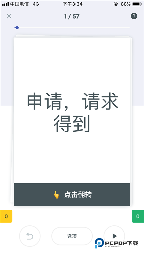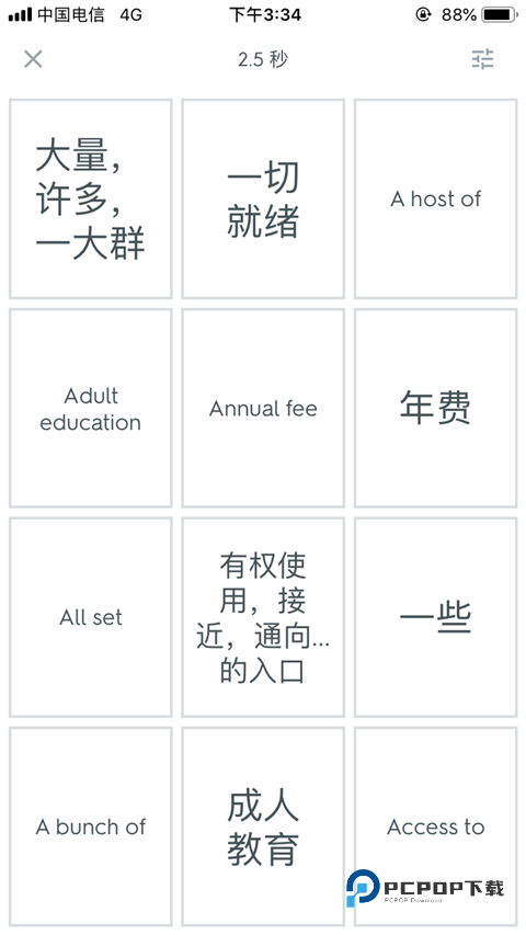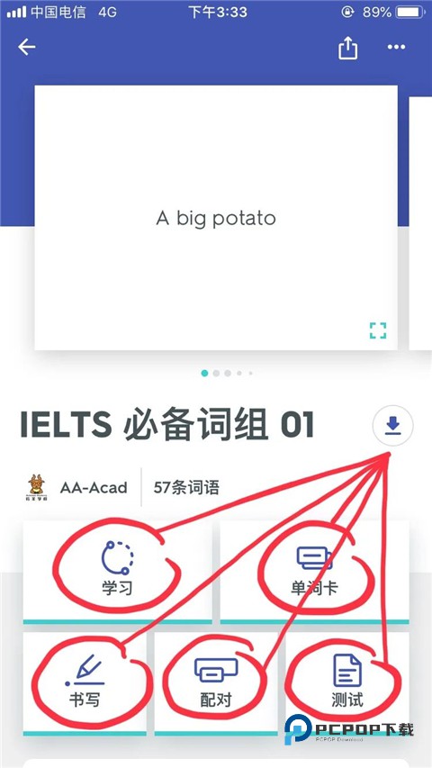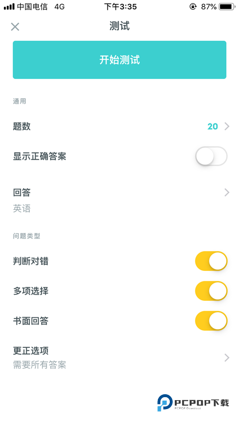1、通过4种学习模式,将"学习集"中的单词学习完毕后,可以点击"测试",测试这一"学习集"的记忆情况。