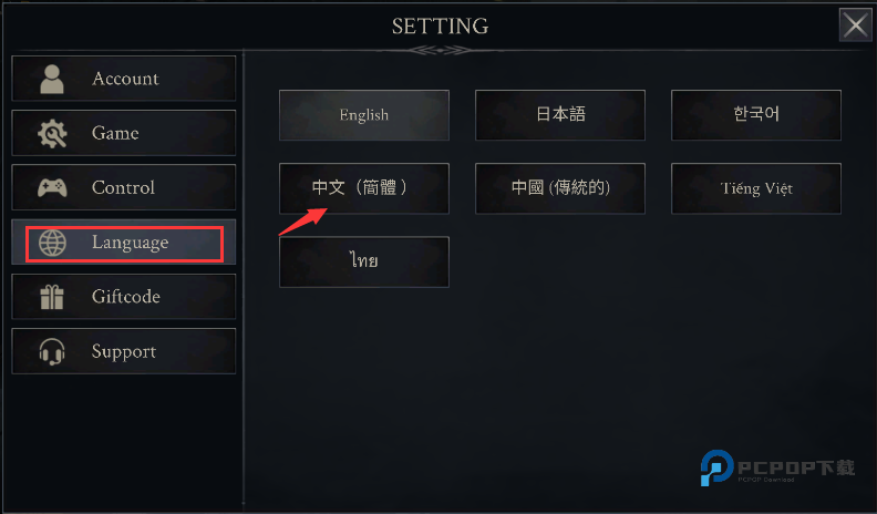 2、进入设置页后选择“language”选项,单击中文简体即可。