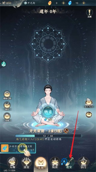 3、当灵气积累到指定数值后,即可进行境界突破,提升角色实力。