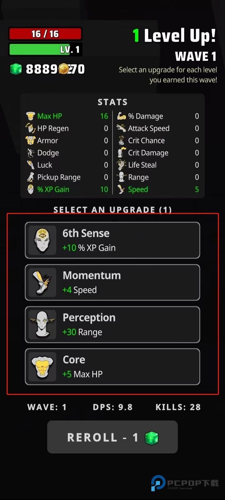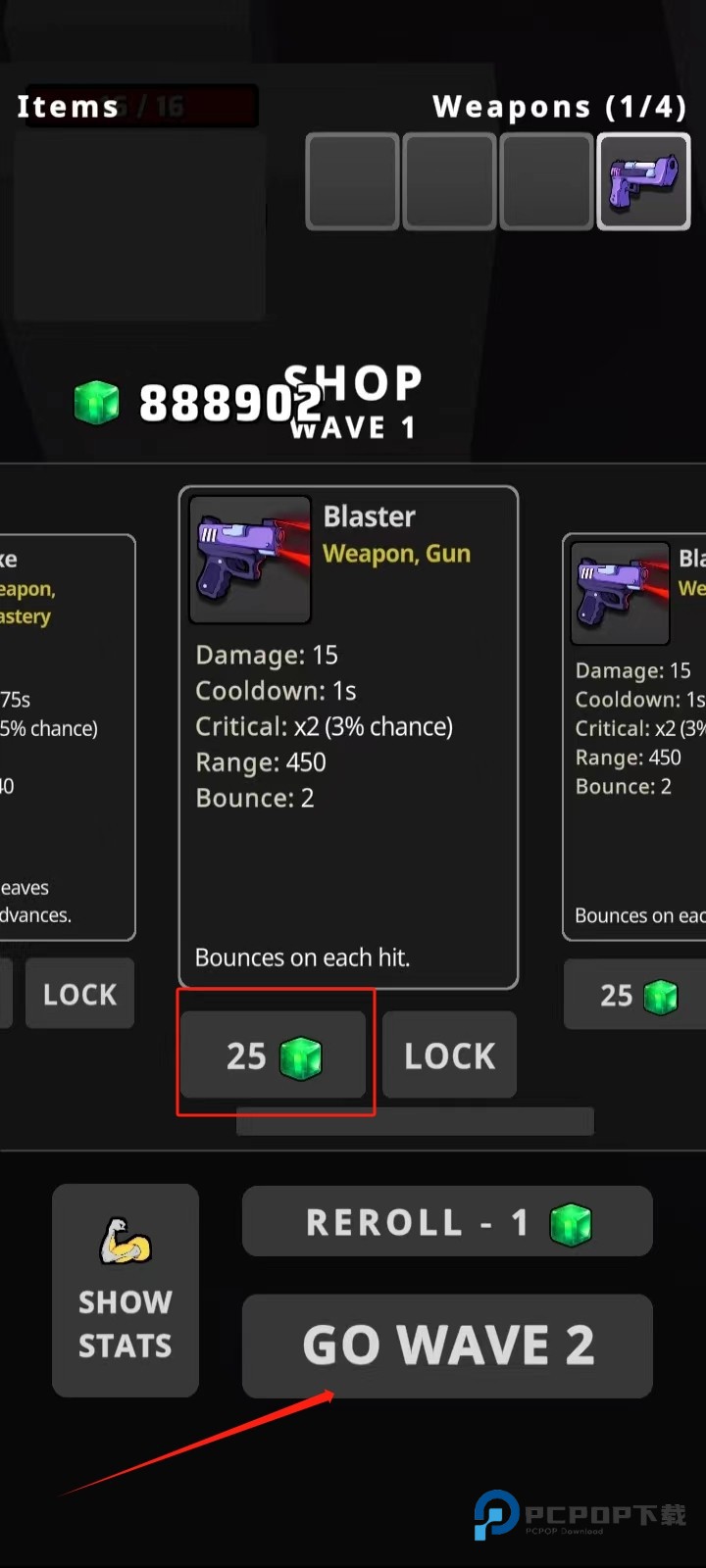 6、使用绿色的晶体购买武器,然后进入下一波战斗。
