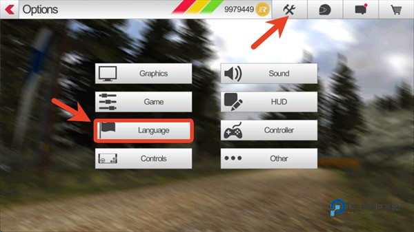 1、首先点击图示右上角设置按钮,选择Language进入语言设置。