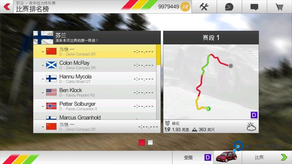 1、游戏采用拉力赛事的规则,玩家将驾驶拉力赛车进行比赛。