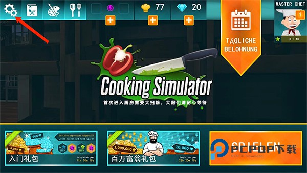 1、打开Cooking Simulator游戏,进入游戏主界面,选择左上角【齿轮】图标,