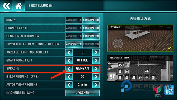 2、进入设置界面,选择SPRACHE(倒数第四行)的【三角形】图标进行语音切换,