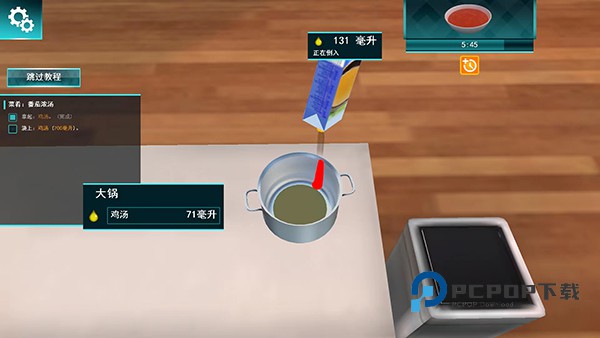 4、拿起物品后,再点击空白的地方即可进行放置,接着我们来练习第一道菜,番茄浓汤,