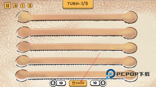 2、对局开始后,界面显示【/5】,此时可利用下方【SHOP】等功能,为后续回合做准备。