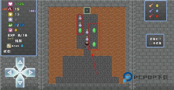 3、地图内会散布各种道具,可以以触碰的方式拾取,像红药水和蓝药水可以恢复补充我们的蓝量