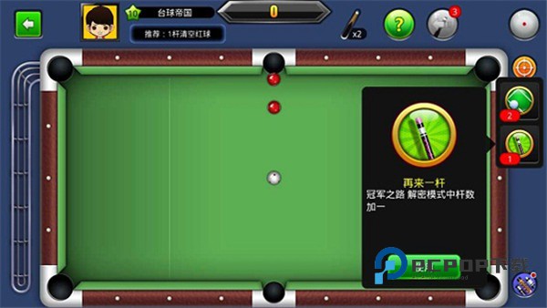 解谜模式中使用,可以获得额外的一次尝试机会。解谜模式,会考验玩家对击球角度以及特殊技巧的运用,不可避免要进行多次尝试。