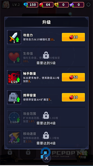 3、通过杀掉敌人,我们可以获得血滴,可以用来升级我们的各种能力。