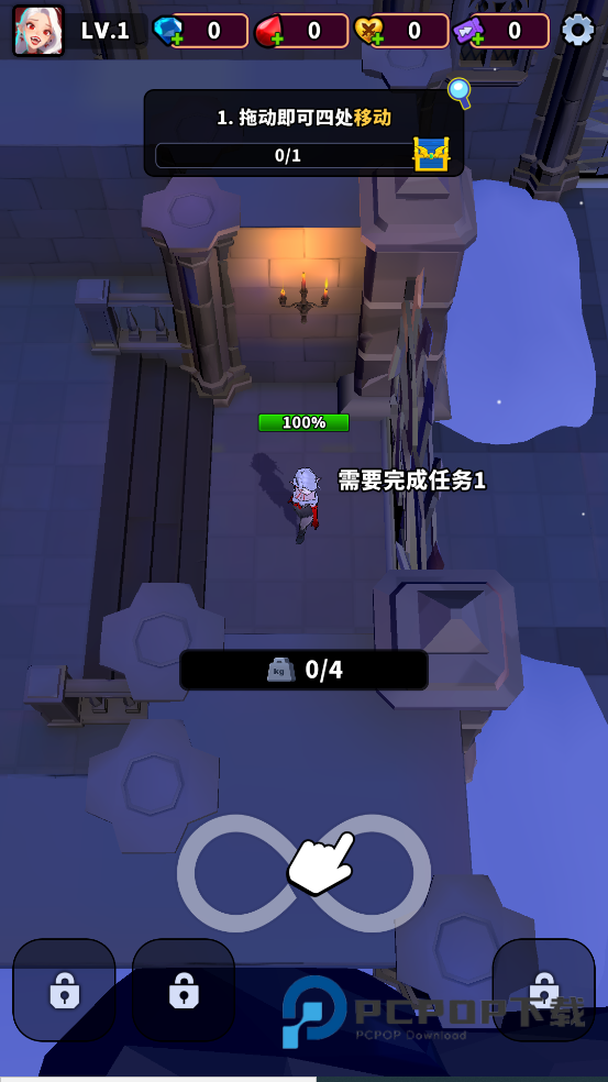 1、我们只需要通过滑动屏幕操控角色移动就可以了。