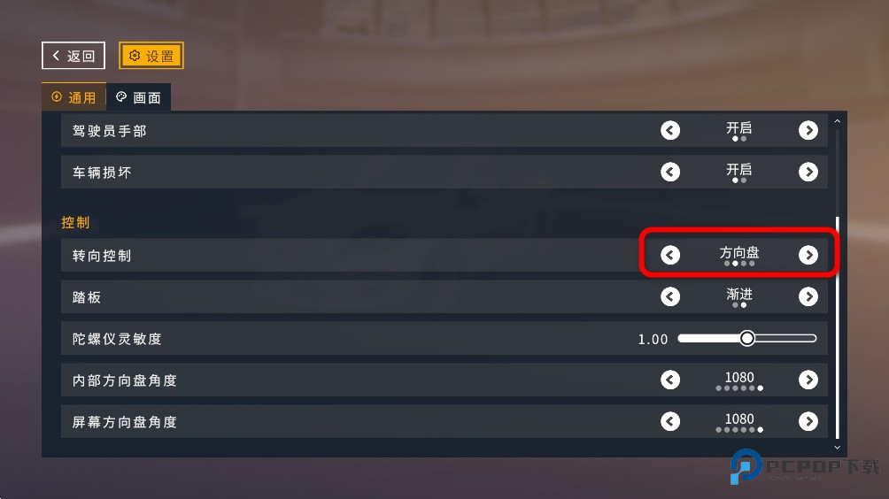 2. 在设置中找到“控制”选项,点击进入后选择“转向控制”,此处提供四种不同的转向模式供玩家选择。