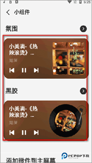 2、接着就可以添加到小组件中,在小组件中控制音乐
